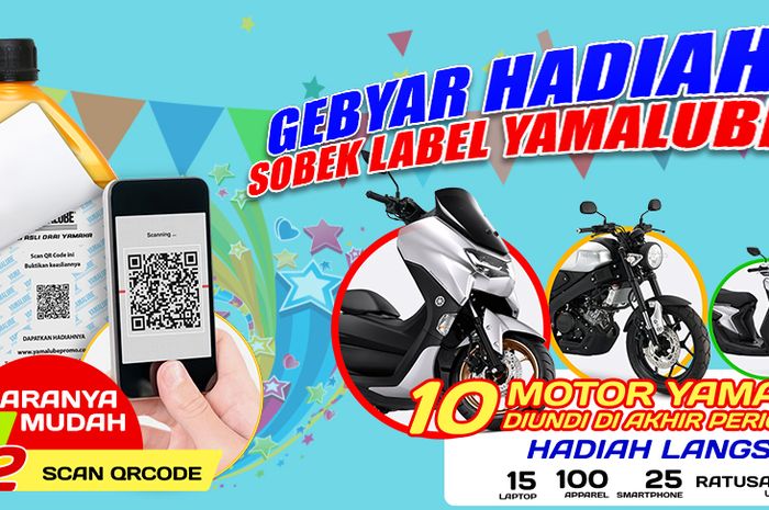 Nantinya konsumen berkesempatan memenangkan ratusan hadiah langsung yang menarik dan hadiah undian sepeda motor terbaru dari Yamaha dengan program Gebyar Hadiah Sobek Label Yamalube.