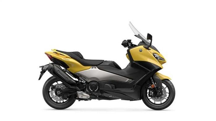 Yamaha TMAX 2022 tersedia dalam warna kuning, terinspirasi dari TMAX generasi pertama yang dirilis 20 tahun lalu.