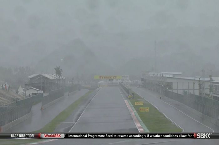 Baru mau mulai WSBK Indonesia 2021, hujan badai langsung mengguyur Sirkuit Mandalika.
