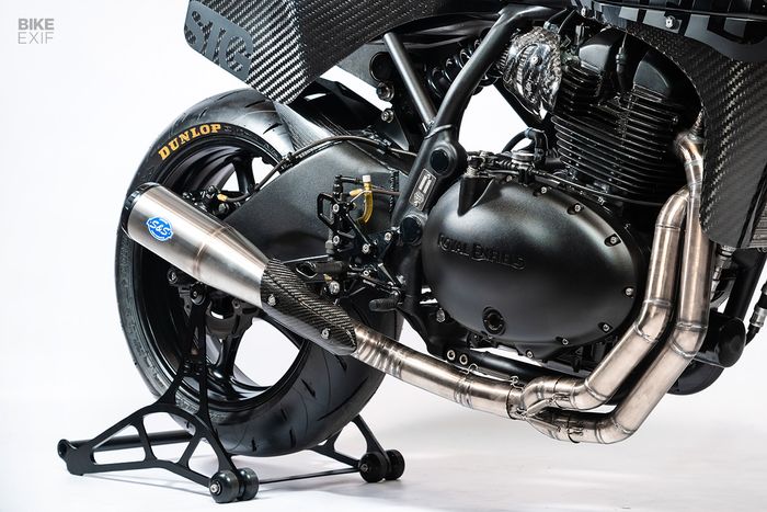 Ditambah ubahan di camshaft dan shifter S&S, sistem kopling Rekluse baru, quick-shifter Gorilla, pendingin oli aluminium yang lebih besar, dan filter silinder K&N.