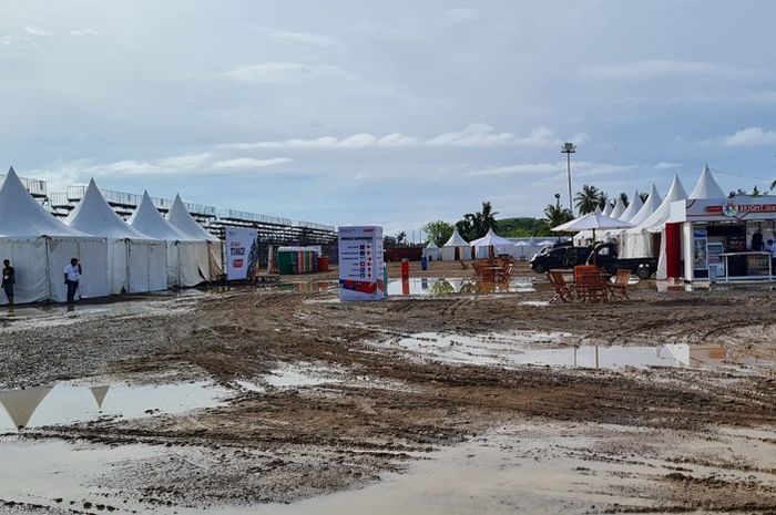 MOTOR Plus-online.com - Diguyur hujan badai kemarin sore, begini kondisi area penonton Sirkuit Mandalika pagi ini, Minggu (21/11/2021).