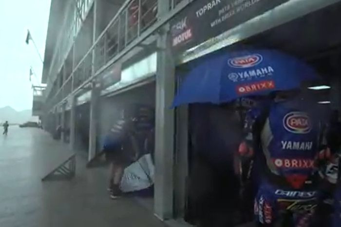 Baru mau mulai WSBK Indonesia 2021, hujan badai langsung mengguyur Sirkuit Mandalika.