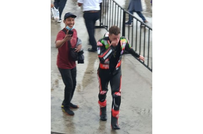 Seperti yang diposting akun Facebook Ergus Oei, yang mengabadikan Jonathan Rea sampai menutup mulutnya.