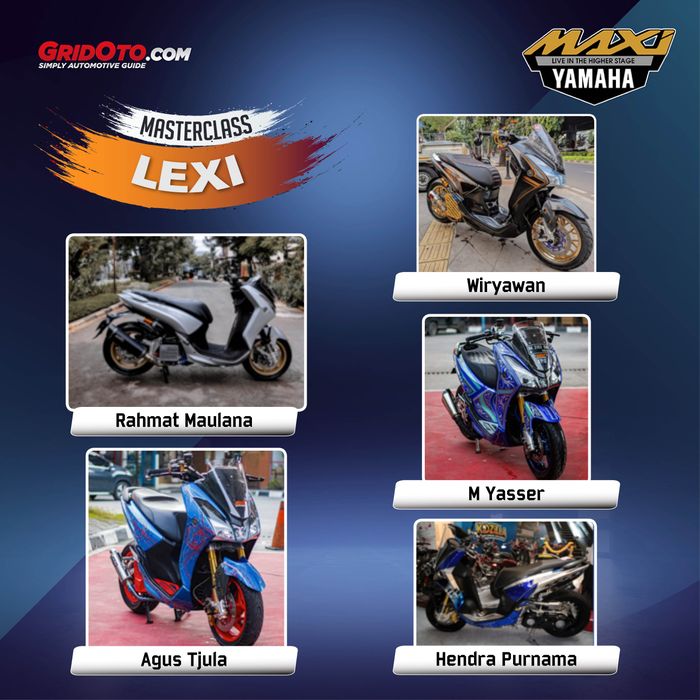Berikut 5 nama peserta kategori Yamaha Lexi Master Class yang lolos 40 finalis Online Customaxi 2021 :