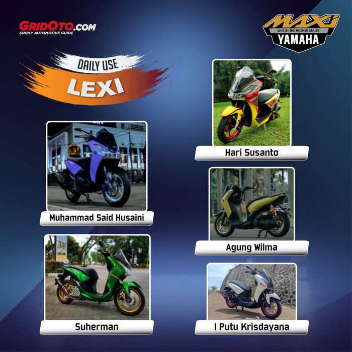 Berikut 5 nama peserta kategori Yamaha Lexi Daily Use yang lolos 40 finalis Online Customaxi 2021