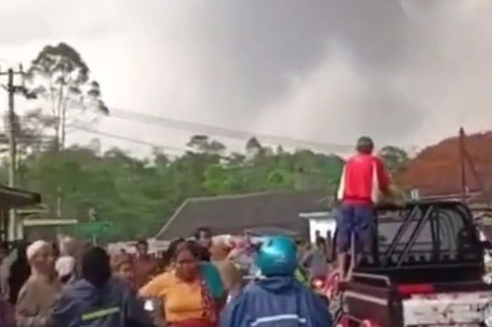 MOTOR Plus-online.com - Video gunung Semeru meletus hari ini (4/12/2021), pemotor kocar kacir hindari hujan abu vulkanik.
