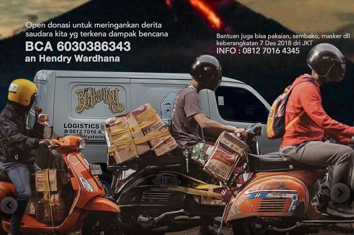 Bala bantuan bagi korban erupsi Gunung Semeru pun berdatangan, termasuk dari komunitas Vespa Mad Ride.