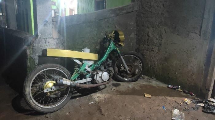 Terlihat dari foto yang diambil oleh wartawan Tribun Jabar, Handi terlihat memodifikasi motornya ke aliran motor drag bike.