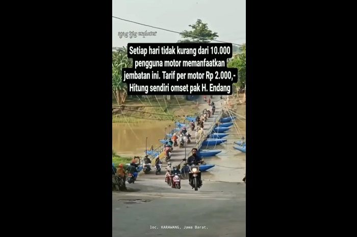MOTOR Plus-online.com - Video jembatan perahu di Karawang, Jawa Barat, kena tarif Rp 2 ribu dilewati 10.000 lebih motor setiap hari, auto cuan nih.