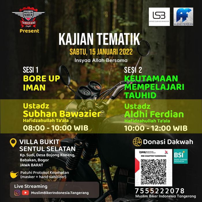 Kemudian dilanjutkan dengan Sesi kedua yang akan diisi oleh Ustadz Aldhi Ferdian dengan tema ‘Keutamaan Mempelajari Tauhid’ mulai dari pukul 10.00 hingga 12.00 WIB.