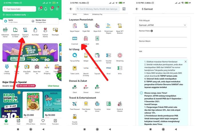 Berikut cara bayar pajak kendaraan di Tokopedia: