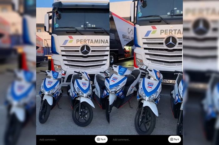 Pada awal video, terlihat motor matic Honda Vario parkir berjejer di depan truk Pertamina Mandalika SAG Team.