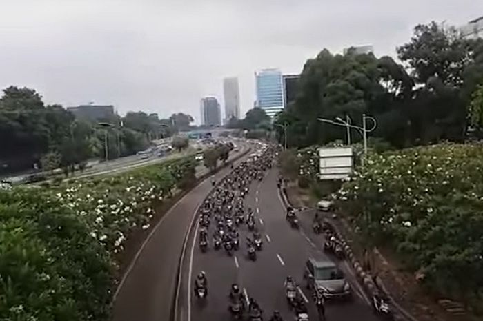 Tak lupa, ratusan motor yang dikendarai para driver ojol pun secara serentak ikut mengawal.