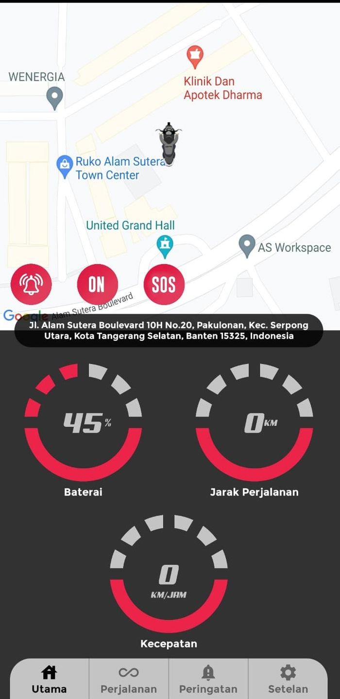 Dalam aplikasi, pengendara dapat melihat secara langsung kondisi baterai, jarak tempuh dan kecepatan motor dalam satu