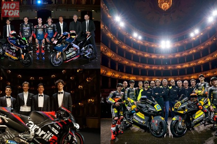Trio skuat MotoGP, Mooney VR46 Racing Team; WithU Yamaha RNF MotoGP Team dan Aprilia Racing, tidak semata-mata sama lokasi launching di atas panggung teater.