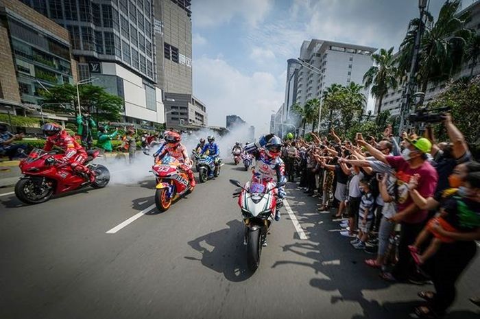 MOTOR Plus-online.com - Parade pembalap MotoGP di Jakarta (16/3/2022) bikin heboh.