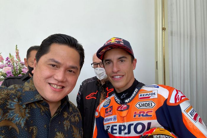 MOTOR Plus-Online.com - Menteri BUMN Erick Thohir bilang salah kostum saat foto bareng Marc Marquez.