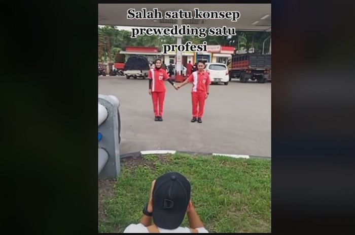 Viral foto-foto pasangan kekasih yang melakukan sesi foto prewedding di SPBU.