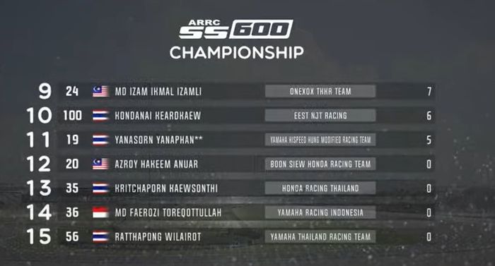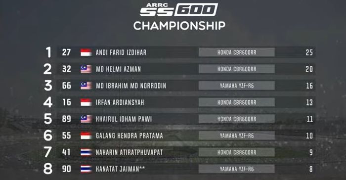 Berikut hasil lengkap race 1 SS600 ARRC Thailand 2022: