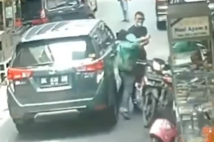 Dalam video awalnya terlihat ada sopir ojol dan pengemudi Kijang Innova saling berhadapan.