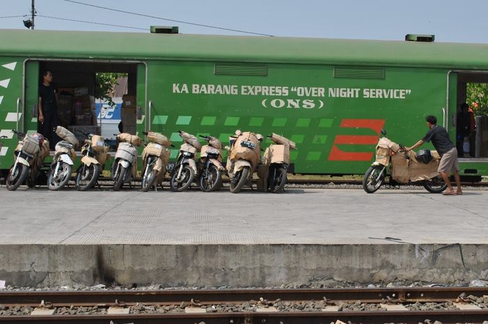 Dibandingkan harus menempuh perjalanan jauh naik motor, lebih aman motor dimasukkan ke dalam kereta api.