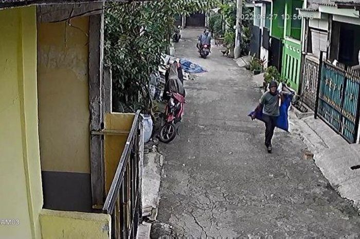 Dalam rekaman CCTV yang beredar di media sosial Instagram, pelaku diduga seorang pemulung terlihat berjalan kaki di sebuah komplek pemukiman warga.