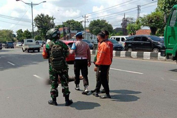 MOTOR Plus-online.com - Ban motor Honda BeAT meletus, emak-emak tergeletak di tengah jalur tengkorak Hanoman, Semarang, Jawa Tengah.