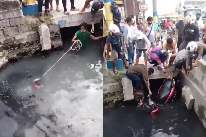 MOTOR Plus-online.com - Viral video motor Yamaha NMAX nyebur ke selokan warga langsung berusaha menyelamatkan, netizen malah bilang begini.