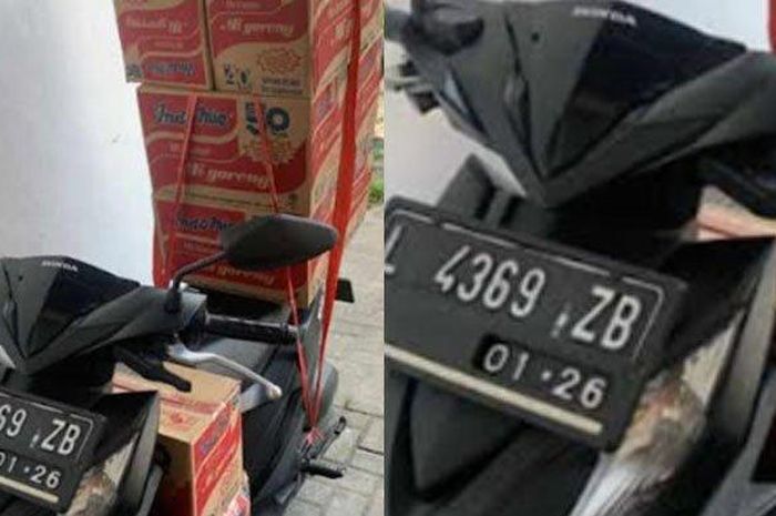 Motor Plus-online.com - Tega, Honda BeAT beserta 8 kardus mi instan milik pedagang disikat maling saat parkir di swalayan