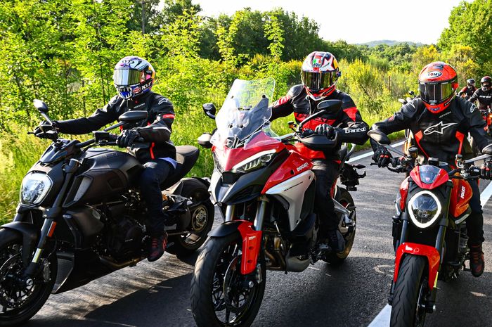 MOTOR Plus-Online.com - Naik moge Ducati, trio pembalap Ducati MotoGP konvoi keliling Italia hingga riding di Sirkuit Mugello.