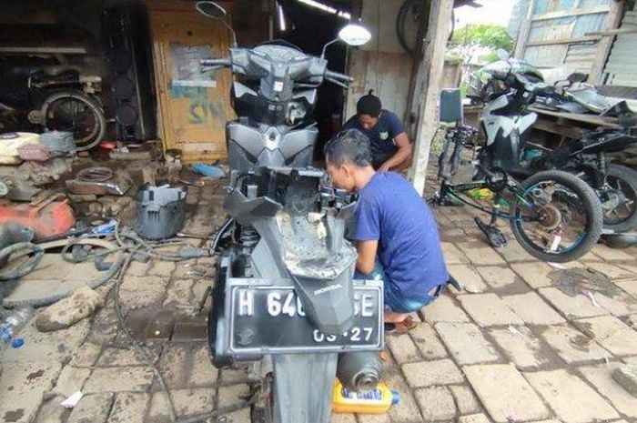 MOTOR Plus-Online.com - Ternyata segini biaya perbaikan motor terendam banjir rob Semarang kata sebuah bengkel, murah dan terjangkau.