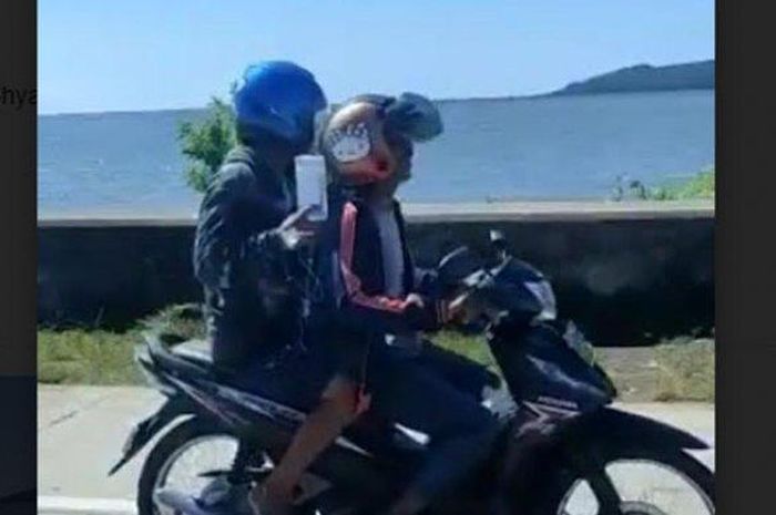 Pasien RS tersebut tampak dibonceng oleh rekannya menaiki motor bebek.