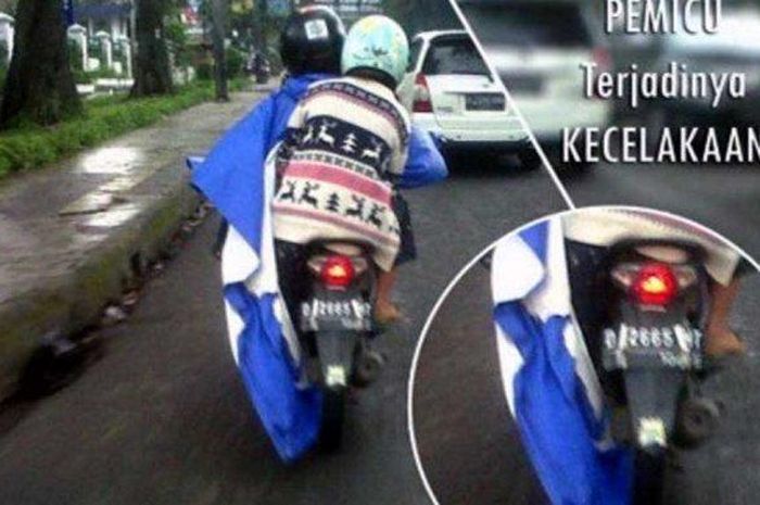 Motor Plus-online.com - Kebiasaan salah saat mengendarai motor matic, menggunakan jas hujan ponco karena simple.