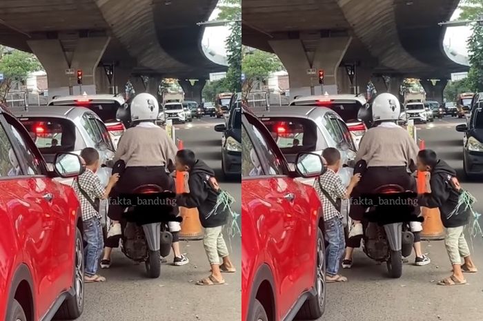"Viral pengendara wanita diganggu dua anak kecil di lampu merah Sukajadi Paskal kota Bandung." tulis akun tersebut.