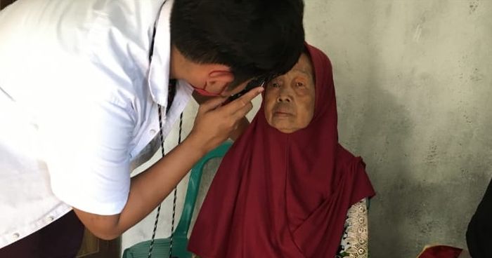 Ketua ARCO Chapter Sumbawa, Om Erick apaan akrabnya yang juga berprofesi sebagai dokter mata turun langsung melakukan pemeriksaan mata untuk para lansia.