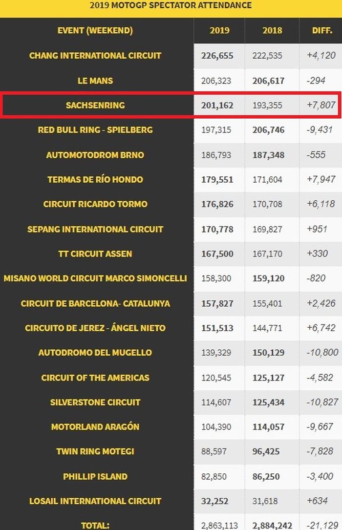 Artinya, ada kenaikan sekitar 7.807 penonton yang menghadiri Sirkuit Sanchsenring saat itu.