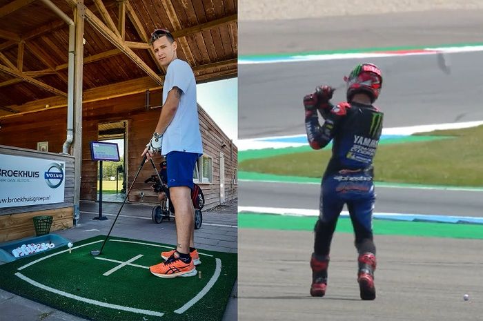 Usai finis pertama di Sirkuit Assen musim lalu, Thomas Maubant yang merupakan sahabat Quartararo membawakan stik dan bola golf ke area run off.