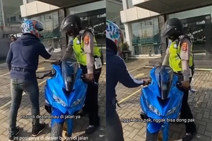 Bukan tanpa alasan, pemotor tersebut terlihat cekcok dengan setelah ditilang polisi di depan diler.