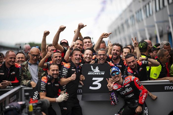 "Saya sangat senang! Kami bekerja keras, tanpa pernah menyerah, dan hari ini kami mendapat hadiah pertama untuk usaha saya dan Aprilia," ujar Maverick Vinales dikutip dari keterangan resmi Piaggio Indonesia, Senin (27/6/2022).