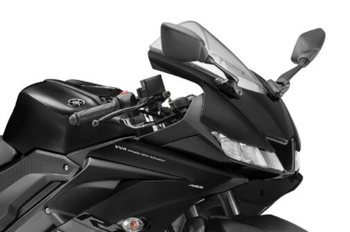 Bahkan tulisan grafis R15 juga diberi kelir hitam di bagian fairing samping.