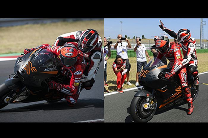 Penampakan motor MotoGP Ducati aneh dipakai bonceng General Manager Ducati Corse Luigi Dall'Igna di ajang World Ducati Week 2022 (WDW2022) di sirkuit MotoGP Misano, pekan lalu.