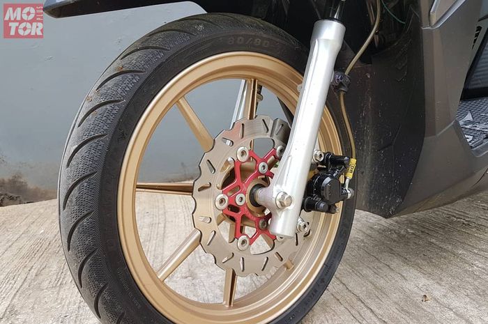 Setelah diganti dengan piringan berdiameter 220 mm, pengereman Honda Vario 150 punya Dedi jadi lebih pakem.