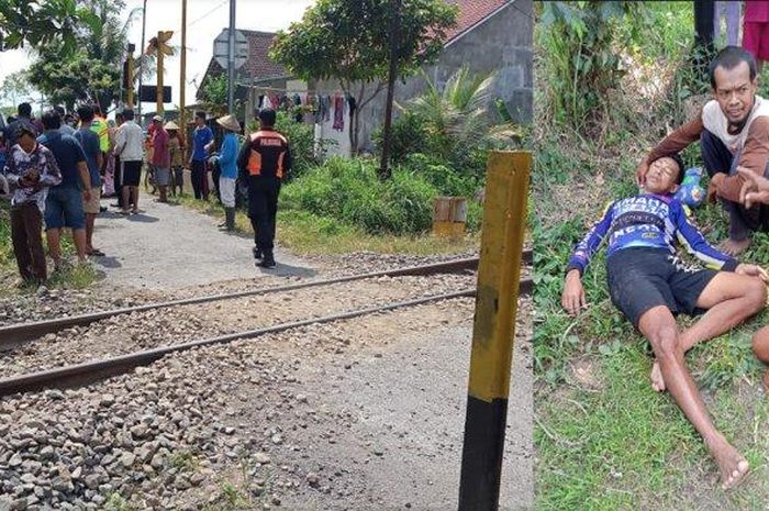 Pemotor bernama Andik selamat dan bahkan masih sadarkan diri meski ditabrak KA Dhoho saat melintas di pelintasan kereta api.