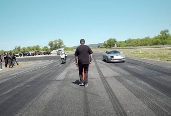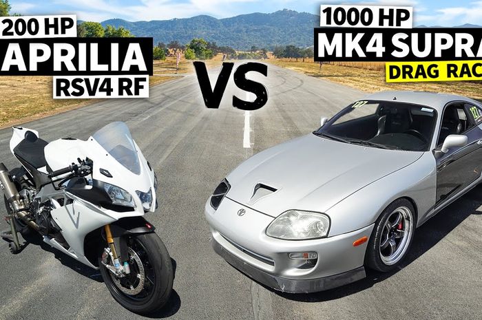 Sebuah channel YouTube merealisasikan pertandingan balap lurus antara moge Aprilia RSV4 RF dengan sport car JDM legendaris Toyota Supra dengan Turbo.