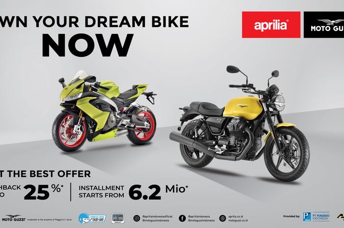 Program khusus untuk pembelian motor Aprilia dan Moto Guzzi di bulan Agustus 2022 ini bertajuk “Own Your Dream Bike Now”.