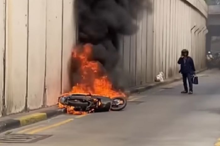 Dalam video tersebut, terlihat motor itu terbakar saat lalu lintas di lokasi sedang normal.