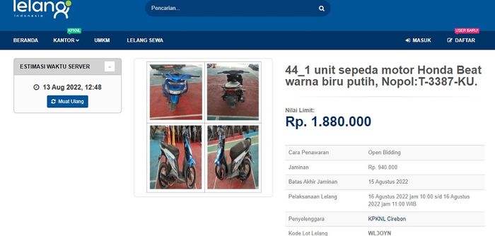 Peserta lelang bisa menyetorkan uang jaminan Rp 940 ribuan dan berkesempatan membawa pulang Honda BeAT ini.