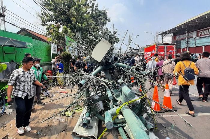 Nahasnya truk turut menyeret pemotor dan beberapa orang yang di dekat tower tersebut.