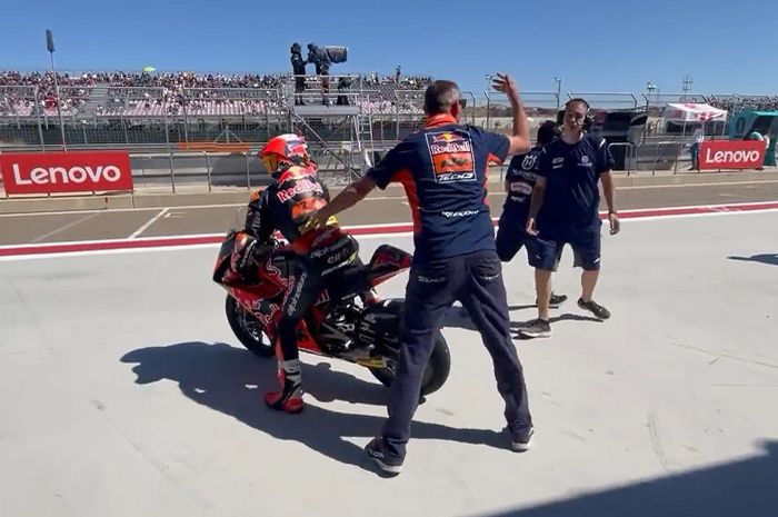 Pada video terlihat Adrian Fernandez mau keluar pit untuk menjalani sesi kualifikasi 2 (Q2) Moto3 Aragon 2022.