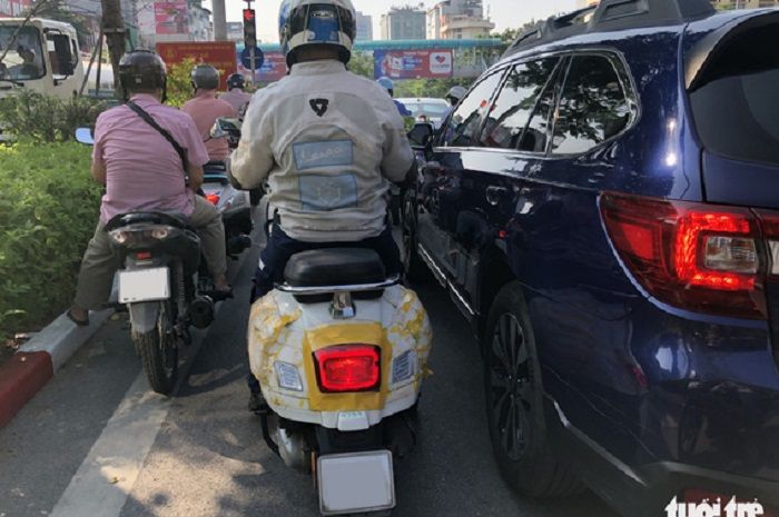 Dikutip dari 2banh.vn, Vespa baru ini sedang dites di jalanan Hanoi, Vietnam.